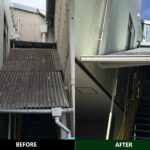 兵庫県尼崎市の工場にて雨樋交換工事(軒樋半丸105、竪樋パナソニック60Φ)