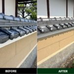 京都府亀岡市にて割れ落ちた塀瓦面土の漆喰塗り直し工事