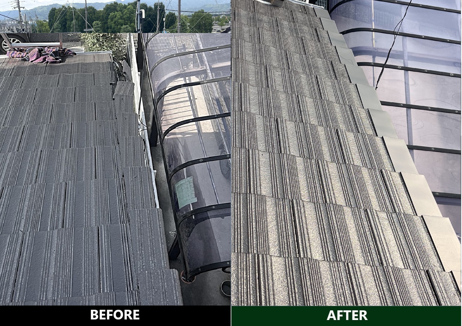 京都府長岡京市の戸建て住宅にてカラーベストから立平(ライトブラック)へカバー工法